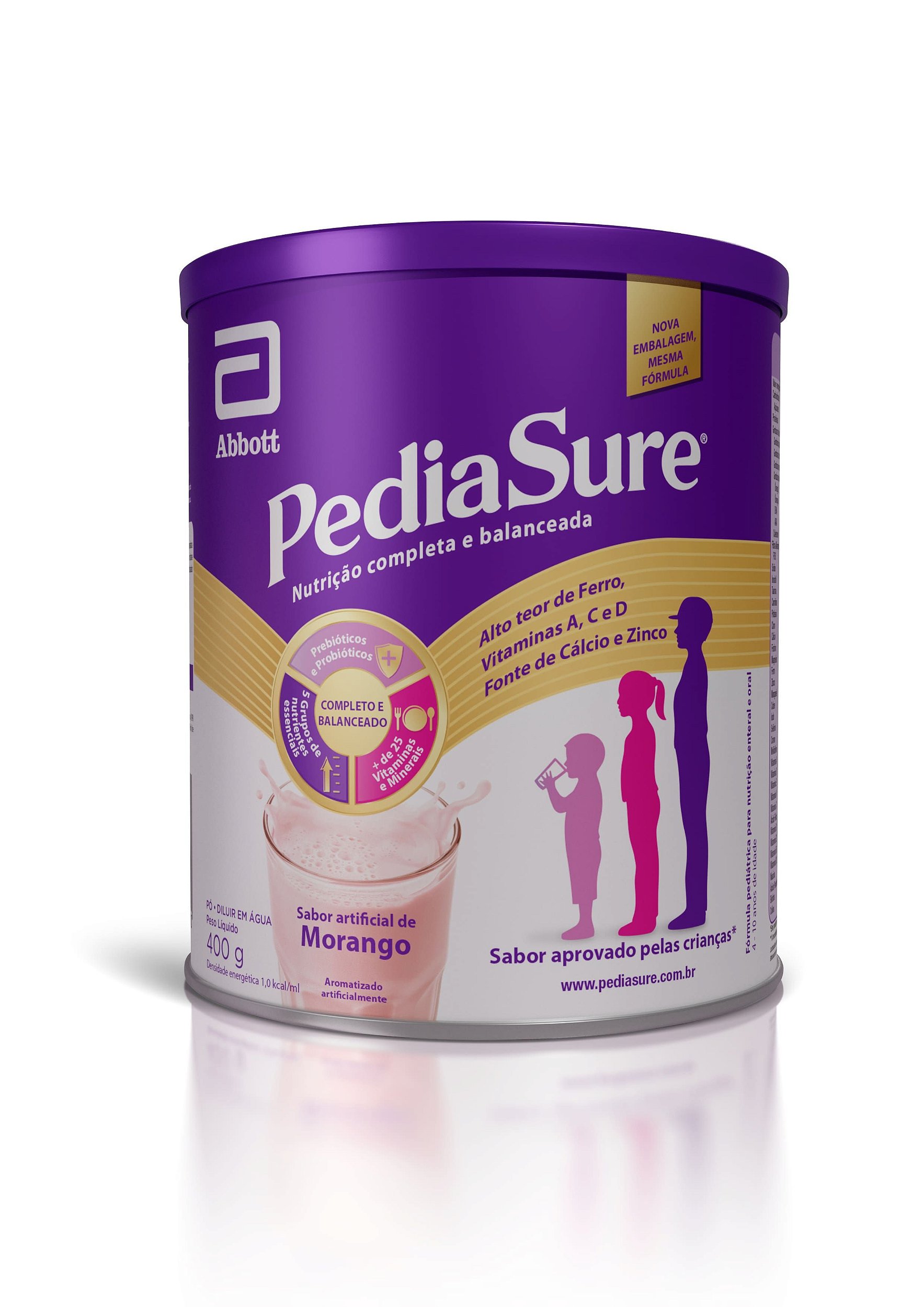 Alimento nutricionalmente completo, para uso oral ou enteral, para auxiliar no crescimento e desenvolvimento de crianças com dificuldades alimentares ou com necessidade de manutenção ou recuperação do estado nutricional. Normocalórica (1.0 cal/ml) em sua diluição padrão, com 12% de proteína (70% concentrado protéico do leite, 16% concentrado protéico do soro e 14% proteína isolada de soja), 53% de carboidrato, podendo conter sacarose e 35% de lipídeos com combinação de DHA e ARA. Presença de prebióticos (FOS) e probióticos. Sabores baunilha, chocolate e morango. Apresentação: lata de 400 g e 900 g Baunilha Registro MS N° 474320342 Chocolate Registro MS N° 474320341 Morango Registro MS N° 474320343. Procedência: Cingapura